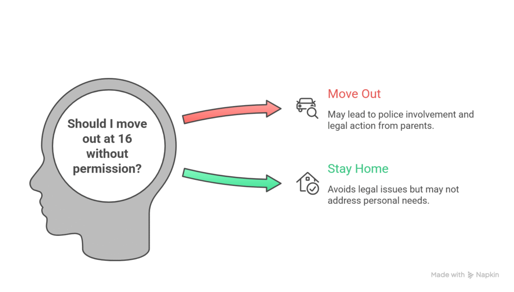 Leaving home at 16 carries many risks. Teens might face financial struggles and lack of support. They may not access healthcare or education easily. Legal troubles can arise without proper guardianship. Emotional stress and loneliness are common challenges. Planning and seeking help reduces these dangers. It is best to consider all factors before moving out.